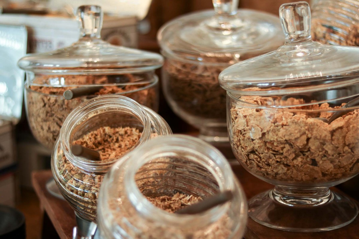Neben Obst, süßem und herzhaftem Gebäck, Müsli, Wurst, Käse und Salaten konnte man zusätzlich noch einige Gerichte bestellen. Wie wäre es z.B. mit frischem Porridge mit Nüssen, einem Greek Yoghurt mit frischen Früchten oder herzhaftem Omelett? Wir haben das Granola mit Yoghurt, Honig und Beeren getestet – ein Gedicht! Toll fand ich auch, dass es einen Bereich mit glutenfreien Produkten, sowie verschiedene Milchsorten gab (low-fat, full-fat und Soy Milk).