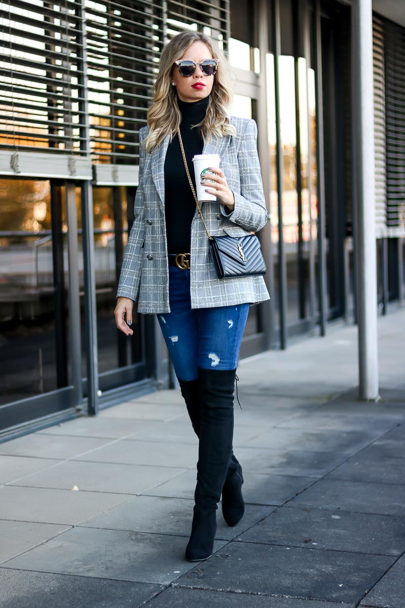 Ich hab einen recht ähnlichen Blazer im Schrank und würde ihn am liebsten jeden Tag tragen! Ich denke auch, dass das zu einem zeitlosen Klassiker wird, einfach auch weil sich die Karos so easy zu allem kombinieren lassen. Zum Thema Overknee ging es mir wie dir: ich war lange unsicher, aber letztes Jahr hab ich mich an ein Paar heran getraut und seitdem liebe ich sie :).